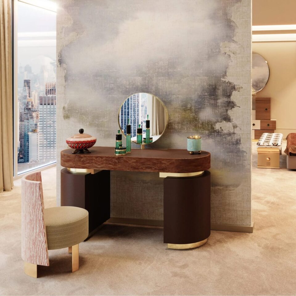Kara Sofa is an art deco-style sofa. Its art deco inspirations are reflected in its shapes, revealing an eclectic, luxurious style.